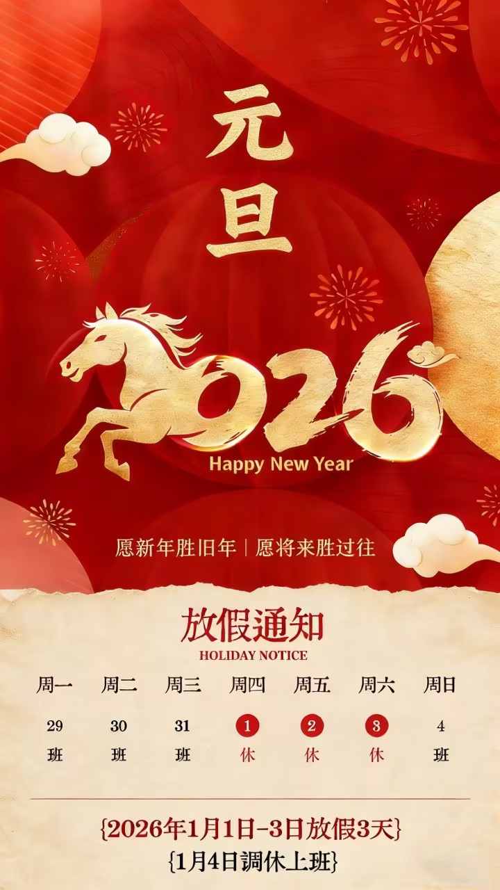 感謝大家一直以來的支持與協助,STAR集團根據年度放假安排于2026年1月1日(星期四)~1月3日(星期六)放假,1月4日開始正常上班。以上,敬請悉知,不便之處,敬請諒解!