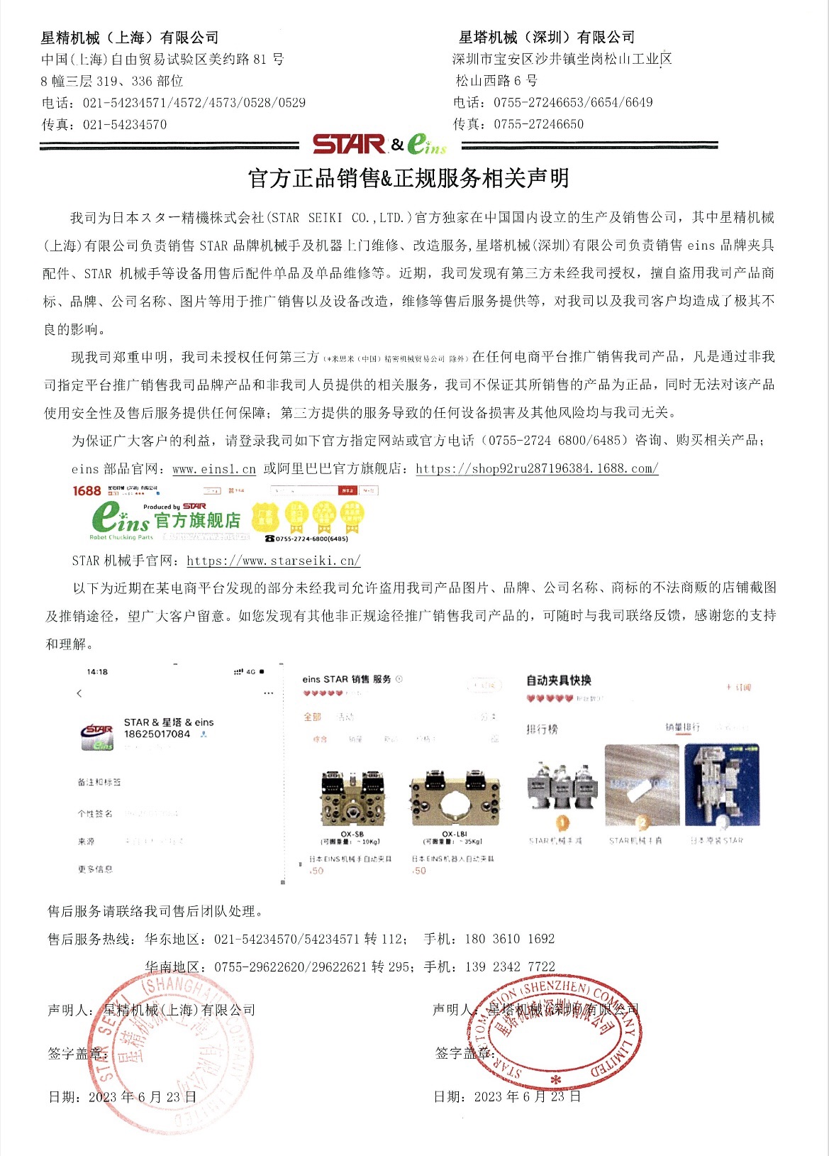 在此,為了保證廣大客戶的利益,現(xiàn)我司鄭重申明,我司未授權任何第三方(*米思米(中國)精密機械貿(mào)易公司 除外)在任何電商平臺推廣銷售我司產(chǎn)品。凡是通過非我司指定平臺推廣銷售我司品牌產(chǎn)品和非我司人員提供的相關服務,我司不保證其所銷售的產(chǎn)品為正品,同時無法對該產(chǎn)品使用安全性及售后服務提供任何保障。敬請廣大客戶留意!